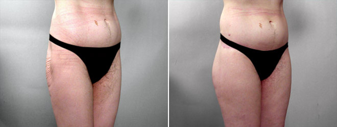 This 37 year old, referred to Dr. Parker by another patient, requested body contouring after LAP-BAND surgery. Subsequent to this she had lost 70 pounds. With her weight now stabilized, she requested improvement with her hanging abdominal skin as well as the fullness and laxity in her hips, buttocks and thighs. Dr. Parker performed a combined lipoabdominoplasty along with an outer thigh and buttock lift. He also re-positioned her LAP-BAND port in a less conspicuous location. The patient recovered very quickly after her surgery. She is delighted with her markedly improved body contour.