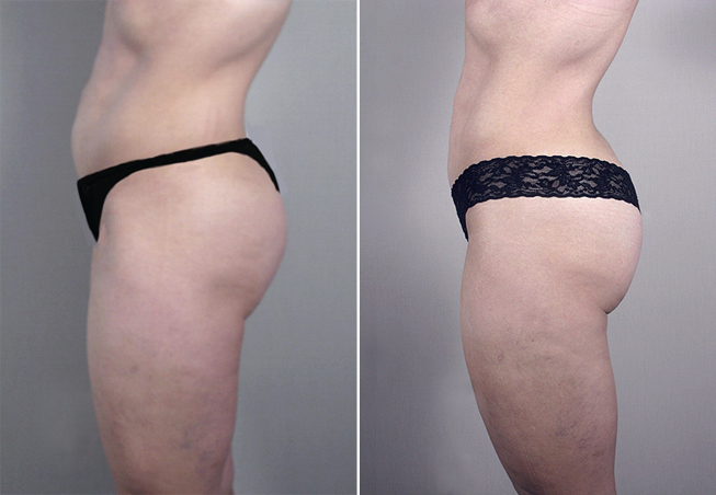 This 42 year old patient, referred by her primary care physician to Dr. Parker, was bothered by a diet and exercise-resistant fullness in her abdomen and hips. She is 5 feet 8 inches tall and weighs 135 pounds. Ultrasonic liposuction of these areas was performed removing 850 cc of fat from the abdomen and 400 cc of fat from each hip. Following surgery, the patient loved her new shape and the clothing it now allowed her to wear.