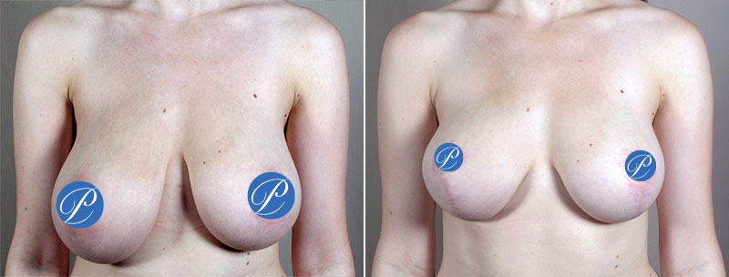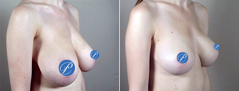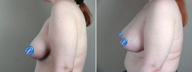 This 22 year old patient was referred to Dr. Parker for breast reduction. He performed a “lollipop” breast reduction, removing 325 grams of tissue from the right breast and 180 grams from the left, lifting and reshaping the breasts into a more aesthetically pleasing position.