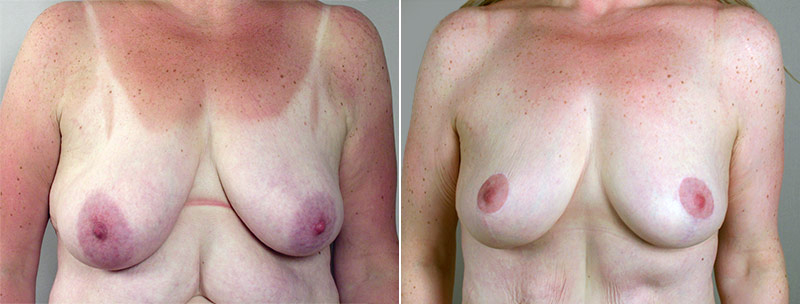 Before & after vertical mastopexy without implants. Note the improved breast shape & improved symmetry.