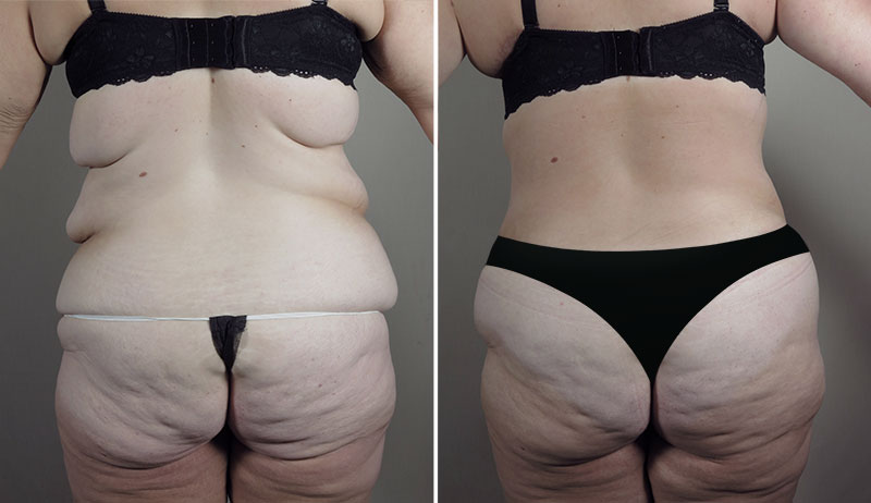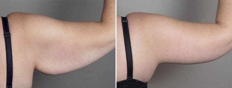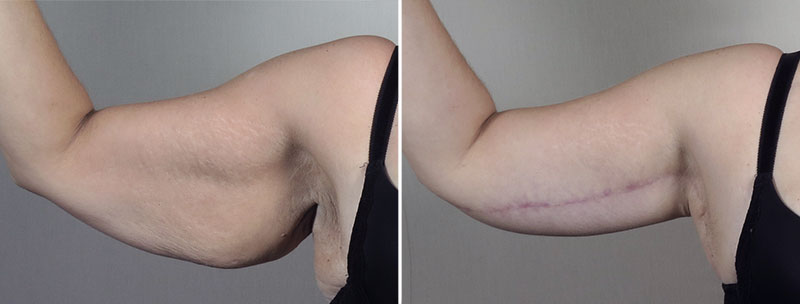 This 36 year old patient was referred to Dr. Parker by another patient following an 85 pound weight loss achieved with diet and exercise. The patient desired better contoured arms, the loose skin from her abdomen and back gone. She is 5’4″ tall and weighs 161 pounds. At surgery, Dr. Parker performed a full brachioplasty or arm lift, lipoabdominoplasty and bra line back lift. The patient recovered quickly and well, particularly given all of the surgery performed. She has healed nicely and is very happy with the improved contours of her arms, abdomen and back.