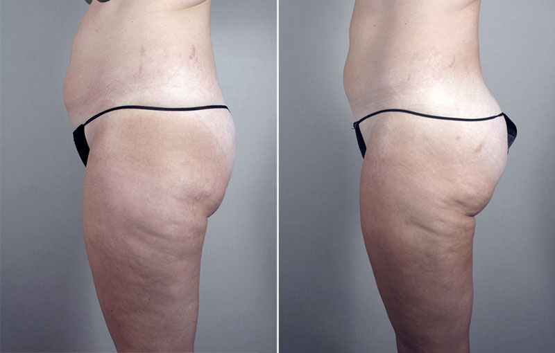This 33 year old patient, referred to Dr. Parker by a former patient, asked for help in re-contouring the fullness of her hips and thighs as well as the flatness of her buttocks. Dr. Parker performed SAFE liposuction on the patient, removing 800 cc of fat from each hip, 875 cc of fat from each outer thigh and 525 cc of fat from each inner thigh. He then injected 400 cc of fat into each buttock. The patient was impressed by how relatively easy her recovery was. She loves the rejuvenated contour of her hips, thighs and buttocks.