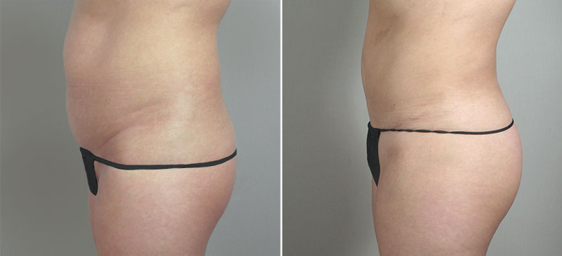 This 34 year old patient was referred to Dr. Parker with concerns about her post pregnancy body. She was bothered by the fullness and laxity of her abdominal skin and underlying muscles, fullness of her hips and lack of fullness and definition of her buttocks. Dr. Parker performed a lipoabdominoplasty and SAFE liposuction of the hips, removing 500 cc of fat from each side. He then injected 360 cc of fat into the buttocks. The patient was pleased with the speed of her recovery. She loves her rejuvenated abdomen, hips and buttocks.