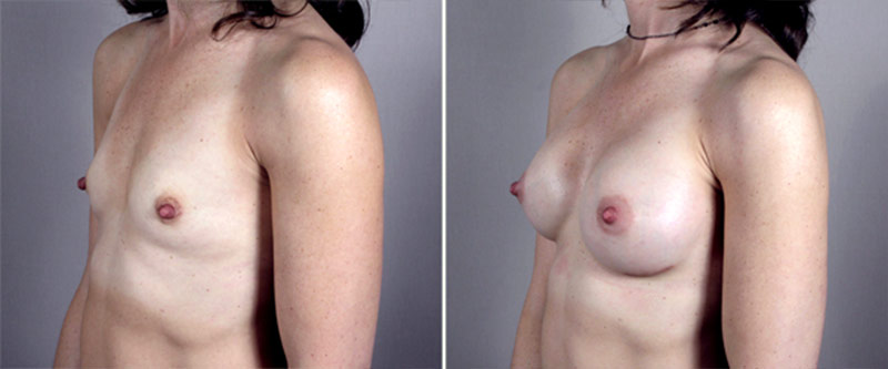 This 48 year old patient who was referred by another patient, asked Dr. Parker for breast enhancement. She is petite (5’1′ tall and weighs 108 pounds) and was an A cup before childbirth. After breast feeding, she is less than an A cup in size. She asked to be made a B cup, but natural. During the patient’s Sizing and Shaping Sessions, she selected 250 cc silicone implants. These were inserted by Dr. Parker through inframammary incisions into a partial submuscular pocket. The patient experienced little bruising and pain, returning to the activities of daily living within several days. She is thrilled with the enhanced, natural appearance of her breasts.