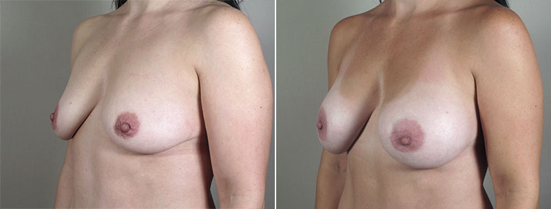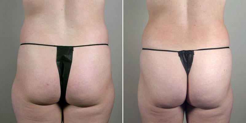 This 36 year old patient, referred to Dr. Parker by another patient, originally requested improvement in the appearance of her abdomen after giving birth to 3 children. The patient was 5’5″ tall and weighed 155 pounds. Dr. Parker performed lipoabdominoplasty and repaired an umbilical hernia. The patient recovered quickly and smoothly. She returned to exercise and lost 12 pounds over the next 1 1/2 years. She subsequently returned to Dr. Parker requesting breast augmentation as well as liposuction of her inner and outer thighs. Dr. Parker then performed these surgeries. He inserted silicone implants into a partial submuscular position through inframammary incisions, 350 cc on the right side and 325 cc on the left to improve upon the patient’s pre-existing asymmetry. In addition, he performed SAFE liposuction on her inner and outer thighs, removing 200 cc of fat from each inner thigh and 450 cc from each outer thigh. Again, the patient recovered rapidly with little pain after these procedures. She is extremely happy with her fuller breasts and better contoured abdomen and thighs.
