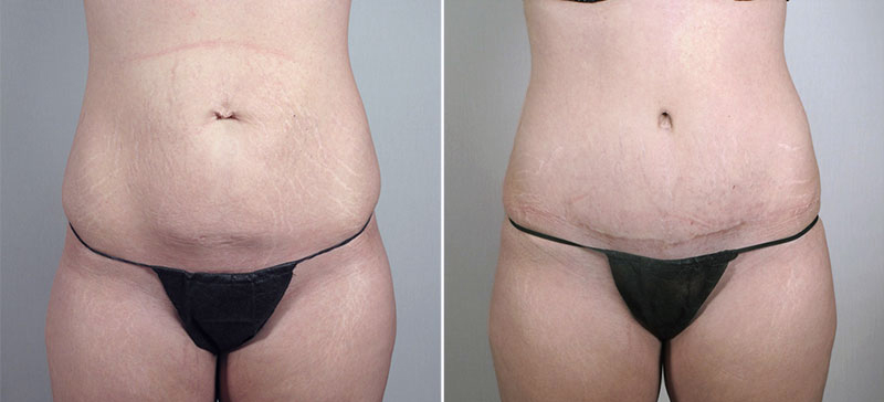 This 23 year old presented to Dr. Parker saying she did not like the look of her abdomen and breasts after giving birth to two children, now ages 2 and 4. She requested more volume in her breasts, which had “deflated” after breast feeding, and a better contoured abdomen. The patient had laser liposuction performed on her abdomen previously by another surgeon and she said it only made its appearance worse. Dr. Parker performed breast augmentation, inserting 425 cc silicone breast implants through periareolar incisions into partial sub-muscular pockets. He also performed a lipoabdominoplasty. The patient enjoyed a prompt recovery from these procedures. She loves her new look and is much more self confident with an improved body image afterwards.