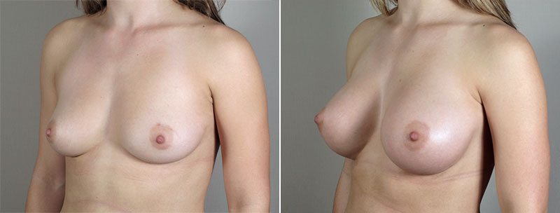 This 22 year old said her breasts have always been smaller than she would like and recently became even smaller after stopping birth control pills. She requested breast augmentation. The patient said she had been a C cup previously and is now a B cup. She is 5’5″ tall and weighs 138 pounds. Using inframammary incisions, Dr. Parker inserted 350 cc silicone implants into both partial submuscular breast pockets. The patient’s recovery afterwards was unremarkable. She is thrilled with the enhanced yet natural look and feel of her breasts.