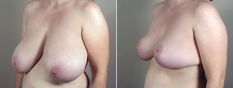This 41 year old patient requested smaller, more uplifted breasts. She says they became larger and more droopy with each pregnancy. The patient currently wears a DDD cup and would like to be a C cup. She is 5’2″ tall and weighs 158 pounds. Dr. Parker performed a vertical breast reduction along with a “lollipop” lift, removing 520 grams of breast tissue from the right breast and 535 grams from the left side. The patient enjoyed a quick recovery after her procedure with very little pain. She is thrilled with her smaller, uplifted and more youthful appearing breasts.