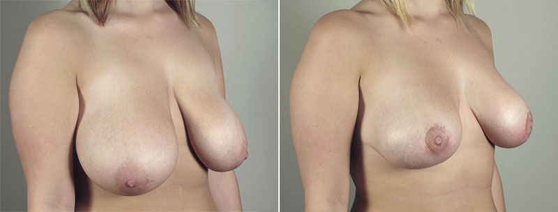 This 20 year old was referred to Dr. Parker by another patient requesting improvement in the appearance of her breasts. She had recently undergone significant weight loss with a reduction in breast size from F to DD. She requested Dr. Parker to make her breasts smaller (large C, small D cup), lift them and restore fullness to the upper portion of her breasts. At surgery, Dr. Parker did just that: he removed 180 grams of breast tissue from the larger right breast and 60 grams from the smaller left side. He transferred breast tissue from the lower portion of the breasts to the upper and secured this tissue with sutures to restore the fullness here the patient desired. Finally, he performed a “lollipop” lift to elevate the breasts higher on the chest wall. The patient’s recovery from surgery was unremarkable. She loves her uplifted, smaller, and better shaped breasts.