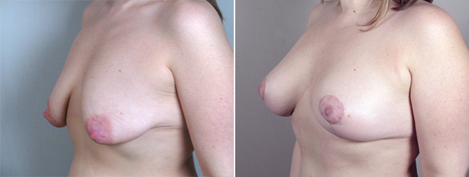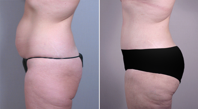 This 34 year old, referred to Dr. Parker by another patient, requested improvement of her sagging breasts and abdomen following childbirth. The patient is patient is 4′ 11″ and weighs 112 pounds. Performing a staged procedure, Dr. Parker inserted 150 cc silicone implants (chosen by the patient in her Sizing Session) into a partial submuscular location and performed a vertical mastopexy to lift the breasts. Additionally, he performed a lipoabdominoplasty and liposuction of the hips, removing a total of 600 cc of fat from each hip using the VASER liposuction system. The patient’s recovery took somewhat longer than usual, but she is very pleased with the improved size and shape of her breasts as well as her more youthful abdomen and hips.