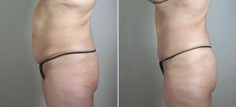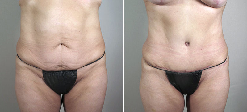 This 49 year old was referred to Dr. Parker by several other patients. She had lost over 100 pounds with a combination of lap band surgery 6 years ago and subsequent exercise. The patient works out regularly and takes very good care of herself now. The patient is 5’4” tall and weighs 155 pounds. She asked Dr. Parker to lift her drooping breasts and make them fuller. She also did not like the hanging skin and fat on her abdomen. Dr. Parker discussed various options with the patient. They agreed upon performing a vertical augmentation mastopexy, otherwise known as a “lollipop lift”, due to the low position of her nipples. They also discussed a lipoabdominoplasty to remove the excess skin and fat from her abdomen. These procedures were subsequently performed by Dr. Parker. He inserted silicone implants in the breasts to supply lost volume, 275 cc on the right side and 300 cc on the left. This evened out her pre- existing asymmetry. He then performed the lollipop lift to improve the shape of the breasts, to allow them to sit higher on the chest wall and to make them perkier. At the same surgery, Dr. Parker also performed a lipoabdominoplasty. The patient recovered well after surgery, getting up and around from the night of surgery onward. She is very happy with her fuller, uplifted breasts and much more sculpted abdomen. She knows she looks good, and it feels great. It has motivated her to work even harder in the gym.
