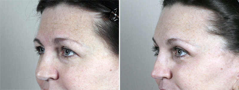 This 49 year old existing patient came back to Dr. Parker to see if he could also help her with improving the appearance of her heavy upper eyelids and puffiness of her lower eyelids. She said these issues had been progressively worsening in recent years. After carefully examining her eyes, Dr. Parker discussed treatment options with her. He pointed out that while she had redundant upper eyelid skin, her eyebrows had also descended over time, worsening the upper eyelid heaviness. Next they discussed options for treating her lower eyelids. She did not want a blepharoplasty on her lower eyelids, and only wanted the skin tightened, so Dr. Parker recommended a laser treatment. Dr. Parker subsequently performed an endoscopic brow lift, upper eyelid blepharoplasty and erbium laser peel of her lower eyelids. The patient enjoyed a quick recovery and is thrilled to be receiving many compliments on her more youthful appearance.