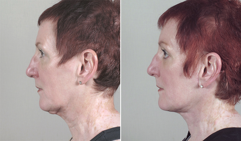 This 64 year old patient, referred to Dr. Parker by friends, was bothered by her puffy lower eyelids and the sagging skin on her neck which continues to worsen with age. The patient had a procedure on her neck by another plastic surgeon 10 years ago which did little to correct her lax skin. During the initial consultation, Dr. Parker discussed options for treatment with the patient. She did not want a full facelift; only the neck treated from the jawline downward. She did want her lower eyelids improved at the same time. At surgery, Dr. Parker performed a neck lift, removing scar tissue from the prior surgery, tightening the underlying platysma muscle, removing the lax skin and tightening the remaining skin. At the same time, he transferred herniated orbital fat in the lower eyelids to the nasojugal grooves, suspended the lax obicularis muscle laterally with sutures, tightened the lax lower eyelids with a canthopexy and conservatively removed some redundant lower eyelid skin. The patient is very happy with the rejuvenated appearance of her lower eyelids and neck.