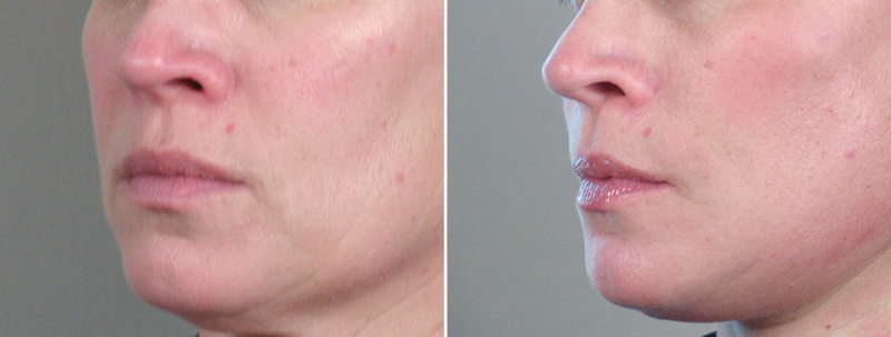 This 50 year old, referred to Dr. Parker by another patient, was bothered by the laxity in her neck and increasing prominence of her jowls. She had Restylane injected into her nasolabial folds and requested something longer term here as well. Dr. Parker performed a facelift, improving the jowls and midface as well as correcting the laxity of the patient’s neck. During the same procedure, he injected fat into the patient’s nasolabial folds and marionette lines to help soften these as well. The patient enjoyed a rapid recovery from surgery. She is very pleased with the rejuvenated appearance of her face and neck.