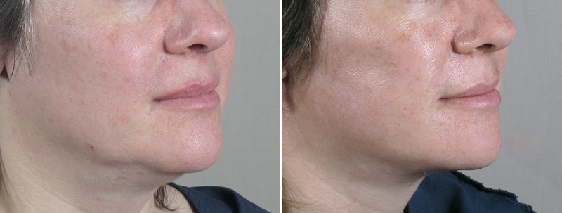 This 46 year old, referred to Dr. Parker by another patient, requested facial rejuvenation. After losing 50 lbs, she was bothered by lax facial and neck skin, increasingly prominent nasolabial folds and marionette lines. She was also concerned about the tired appearance of her lower eyelids. Dr. Parker performed a facelift on the patient with fat injections. Specifically, he elevated the descended mid and lower facial fat into a more youthful position with sutures and removed fat from the neck along with tightening the lax platysma muscle in the neck. He also conservatively removed loose skin from the face and neck. He injected fat into the lower eyelids to create better blending of the lid cheek junction; the patient had no fat to be removed from her lower lids. Dr Parker also injected fat into the nasolabial folds, pre jowl marionette lines and parasymphyseal areas on either side of the chin. This was done to improve these areas of fat atrophy which occurred as part of the aging process. The patient is very pleased with the results of her facial rejuvenation.