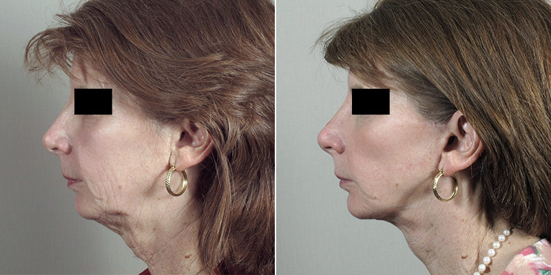This 58 year old patient came in requesting rejuvenation of her neck. She was referred to Dr. Parker by another Parker Center patient. She lost 20 pounds several years ago and though her weight was stable, her neck skin had gotten more lax over past 5-6 years. After examining the patient, Dr. Parker explained to her that her facial soft tissues were lax in addition to those in her neck. They discussed the options of neck lift alone or in combination with a face and neck lift. The patient opted for the latter. Dr. Parker subsequently performed a biplaner face and neck lift. The patient enjoyed a quick recovery after surgery without pain. She is very happy with the improved appearance of both her face and neck. Notice her higher, more youthful cheekbones, the elimination of her jowls, a cleaner jaw line and more contoured neck.