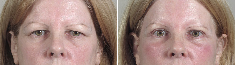 This 61 year old with concerns about facial aging was referred to Dr. Parker by another patient. She had noticed in recent years her facial and neck skin becoming more lax and sagging. In addition, she felt her upper eyelids had become heavy. Following his examination, Dr. Parker discussed various options with her and they came up with the following plan: upper eyelid lift, biplaner face and neck lift to address her soft tissue laxity, fat injections to help restore lost facial volume, and the insertion of an anatomic chin implant. Following surgery, the patient had a normal recovery. She is very pleased with her rejuvenated eyelids, face and neck. She also commented on how much the chin implant has helped. She recently attended a large family party and received many favorable comments about how she looks.
