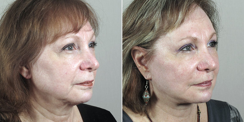This 61 year old existing patient of Dr. Parker’s was bothered by the laxity and sagging of her mid and lower face, as well as her neck. Her weight is stable. She had liposuction of her neck and an upper and lower lid blepharoplasty 20 years ago. At surgery, Dr. Parker performed fat injections to replace lost facial volume due to aging and a biplaner face and neck lift to correct the soft tissue laxity. The patient had a normal recovery period. She is very happy with her rejuvenated and natural looking face and neck.