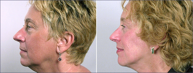 This 54 year old expressed concerns about the puffiness in both upper and lower eyelids as well as progressive facial jowling. After reviewing all options, Dr. Parker performed the following surgeries: endoscopic brow lift, upper and lower blepharoplasty and a facelift. Postoperatively, the patient was very happy with her natural, rejuvenated appearance.