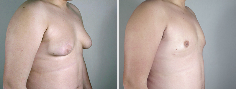 This 16 year old was referred by his endocrinologist to Dr. Parker for surgery after a negative hormonal workup. His breasts enlarged during puberty and have remained this way despite fluctuations in weight. He is 6 feet tall and weighs 220 pounds. After examining the patient, Dr. Parker recommended SAFE liposuction to treat this patient’s gynecomastia. Because of the patient’s good skin tone, Dr. Parker felt confident that his skin would contract without the need for skin removal. At surgery, Dr. Parker removed 400 cc of fat from each breast with SAFE liposuction. The patient had little pain after surgery. His skin contracted over several months giving him a markedly improved, natural appearing chest. The patient is very happy with his result and spent a good bit of the summer shirtless at the beach.