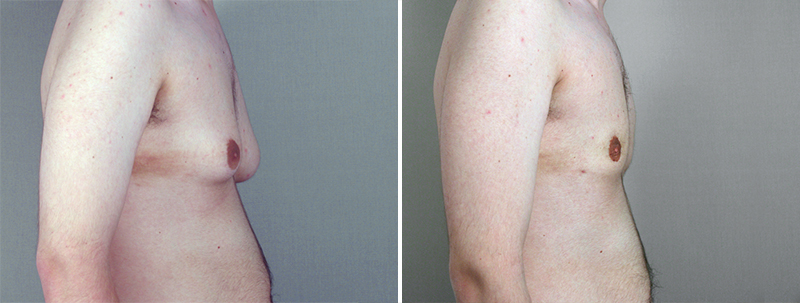 This 16 year old was referred to Dr. Parker by his pediatrician for treatment of his enlarged breasts. They increased in size at puberty and have remained that way. The patient feels quite self conscious about this and requested surgery to correct his enlarged breasts. At surgery, Dr. Parker removed 200 cc of fat from each breast using VASER ultrasonic liposuction. The patient recovered quickly after his procedure. He was quite happy with his markedly improved contour. He also admits to being more self confident after the procedure.