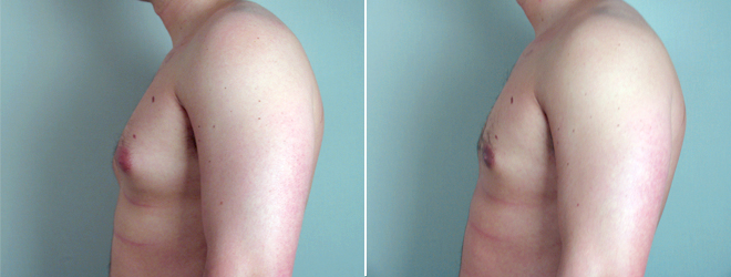 This 24-year-old male has been bothered for sometime by his large breasts. He was referred to Dr. Parker by his primary care physician. VASER liposelection was used by Dr. Parker to remove the excessive breast issue and create a normal contour. Postoperatively, the patient was delighted with the normal appearance of his chest contour, including the absence of any scarring.