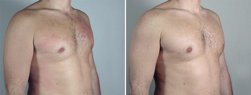 This 38 year old male had gynecomastia surgery by another plastic surgeon 20 years ago. He said he believed the doctor removed too much tissue and caused his areolas to look “sunken in”. Dr. Parker discussed options with the patient and they agreed upon fat injections. Under intravenous sedation, Dr. Parker suctioned fat from the patient’s abdomen, purified it and carefully injected it into the depressed areolas. The patient recovered quickly without pain after the procedure. He is very happy with the improved contour of his breasts.
