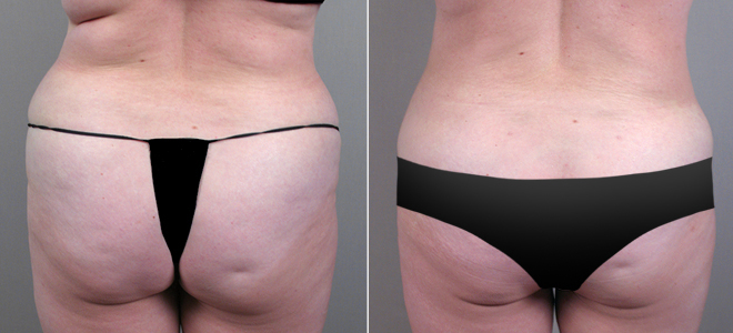 This 39 year old was bothered by the hanging skin and fat on her abdomen after pregnancy and C-section. Following a consultation with Dr. Parker, the patient spent time with his Computer Imager. After these discussions, the patient elected to undergo an abdominoplasty along with SAFE liposuction of her hips and back. The patient is 5’2″ and weighs 140 lbs. During the surgery, Dr. Parker removed 550 cc of fat from each hip and 500 cc from the back. Following her recovery, the patient was very happy with the rejuvenated appearance of her torso.