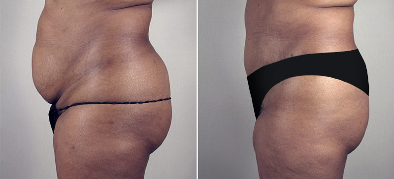 This 53 year old African American patient was concerned about the fullness of her abdomen. She said her weight has been stable for some time. She is 5’4″ tall and weighs 155 pounds. Dr. Parker performed a lipoabdominoplasty on the patient. The patient said she experienced no pain postoperatively. She recovered quickly and was delighted with her appearance. Her dress size decreased from a size 10 to 6 following her procedure.