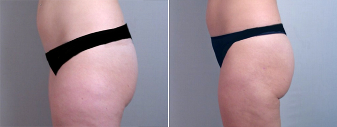 This 25 year old, referred to Dr. Parker by another patient, asked for improvement in the appearance of her inner and outer thighs. Despite working out regularly, the patient has been unable to lose the fullness in these areas. She is 5’4″ tall and weighs 142 pounds. Using the VASER liposuction system, Dr. Parker removed 450 cc of fat from each outer thigh and 300 cc of fat from each inner thigh. The patient experienced a smooth recovery and loved her improved contour. Aside from looking great in a bathing suit, the patient was delighted with how her clothes fit much more attractively.