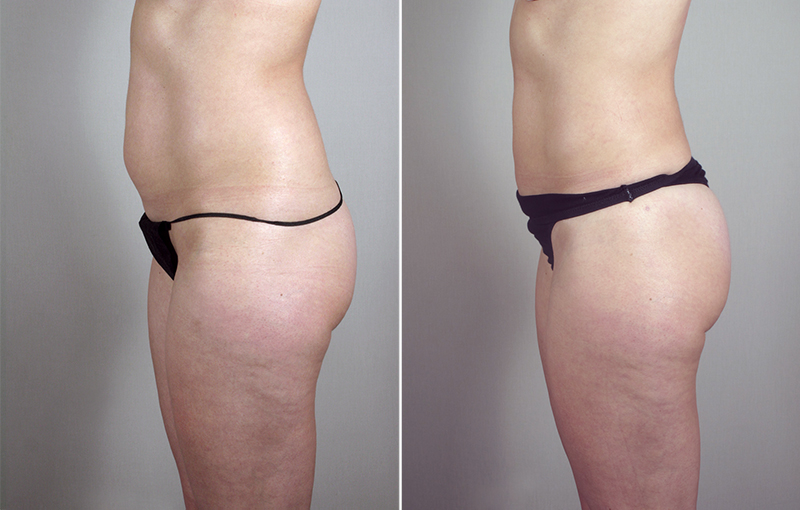 This 40 year old requested improvement in the appearance of her abdomen and hips. She has been bothered by this for the past 5 years, since the birth of her last child. The patient is 5’7″ tall and weighs 131 pounds. Dr. Parker removed 450 cc of fat from her abdomen and 375 cc of fat from each hip with SAFE liposuction. The patient recovered quickly with little pain. She has returned to exercising aggressively and has lost 12 pounds since her procedure. She loves the new contour of her abdomen and hips.