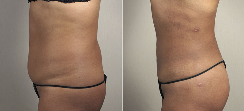 This 25 year old was referred to Dr. Parker by her boyfriend, also a patient of Dr. Parker’s. She wanted to improve the appearance of her abdomen, hips, and back and to add more volume to her buttocks. She is 5′ 1″ and weighs 130 pounds. Dr. Parker performed liposuction and removed the following amounts of fat from each area: abdomen–1350 cc, hips–650 cc each side, and back–300 cc each side. He then purified and injected 300 cc of fat into each buttock. She was pleasantly surprised at how quick and easy her recovery was and she loves the appearance of all the areas Dr. Parker treated.