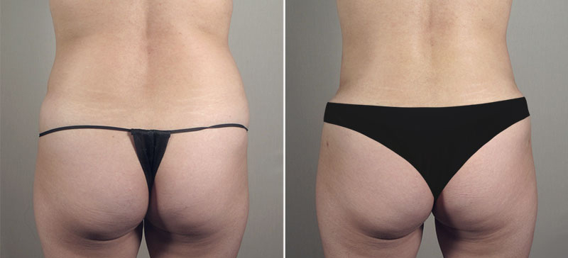 This 35 year old existing patient of Dr. Parker’s requested removal of the excess skin on her abdomen after 2 pregnancies. The patient recently lost 10 pounds through diet and exercise; she is 5’2″ tall and weighs 127 pounds. Dr. Parker performed a lipoabdominoplasty and umbilical hernia repair as well as SAFE liposuction of the patient’s hips, removing 600 cc of fat from each side. The patient recovered promptly from her procedure. She loves the markedly improved contour of her torso.