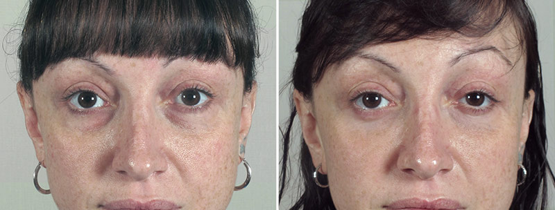 This 35 year old came to Dr. Parker requesting rejuvenation of her lower eyelids. She was happy with the appearance of her upper eyelids. The patient expressed the following to Dr. Parker: she was constantly told she looked tired and did not like the puffiness of her lower eyelids, or the depression just beneath the puffy area. Dr. Parker examined her and explained that the puffiness of her lower eyelids was caused by fat which normally resides around the eyeball herniating forward and pressing outward against the skin. The depression beneath the lower lids is called the “tear trough” and is a result of ligaments which are firmly adhered to the underlying bone. In combination, these factors were causing the patient to look tired. Dr. Parker went on to say that some of her herniated fat could be removed through an incision on the inner aspect of the lower eyelid. This is called a transconjuntival blepharoplasty. The remainder of the fat could be transferred with sutures to fill the tear trough. Finally, her lower eyelid skin would be tightened with a trichloroacetic peel. The patient liked that there wouldn’t be any visible incisions or scarring. Dr. Parker subsequently performed the procedure and the patient had a normal recovery. She has been told how refreshed and well-rested she now looks, boosting her self confidence.