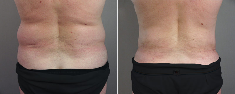 This 60 year old patient, referred to Dr. Parker by his wife, was bothered by the fullness in his abdomen and hips. The patient is 5’10” tall and weighs 185 lbs. Dr. Parker performed an abdominoplasty and SAFE liposuction of the patient’s hips, removing 750 cc from each side. He then injected 360 cc of fat into each buttock.