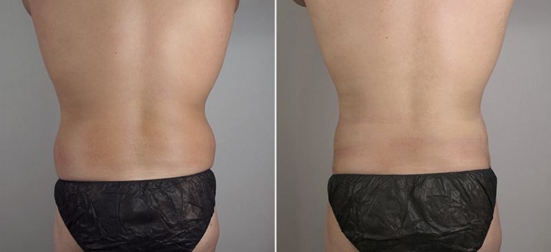 This 34 year old, referred by several other patients, requested an improved contour of his abdomen and flanks. He is 5’6″ tall and weighs 186 pounds. He has not been able lose the fullness in his torso after weight loss or regardless of how much he works out. On physical examanation, Dr Parker pointed out to the patient that his abdominal skin had some stretch marks and only moderate skin tone, which might result in loose skin after surgery. The patient did not want a tummy tuck and together they agreed to perform VASER liposuction to help bring about some skin contraction postoperatively. During surgery, Dr Parker removed 800 cc of fat from the abdomen, and 625 cc from each flank using VASER liposuction. The patient recovered nicely, returning back to activities within several days of surgery. His skin continues to contract, aided by the ultrasonic energy of the VASER system, as seen here 5 months postoperatively. He is delighted with his improved appearance and contour.