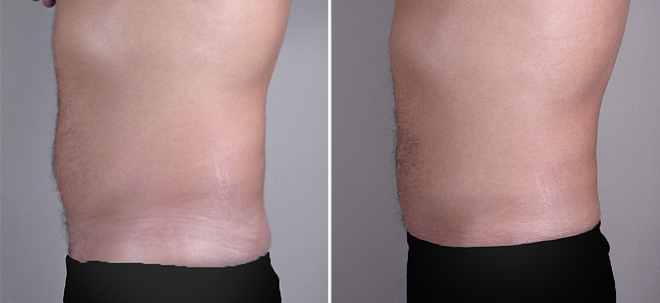 This 44 year old was referred by his wife, also a patient of Dr. Parker’s. He was bothered by the persistent fullness of his abdomen and flanks despite working out regularly. The patient is 6′1″ tall and weighs 220 pounds. Dr. Parker performed VASER liposuction on these areas, removing 600 cc of fat from the abdomen and 500 cc from each flank. The patient recovered quickly after surgery, returning to the activities of daily living within several days.