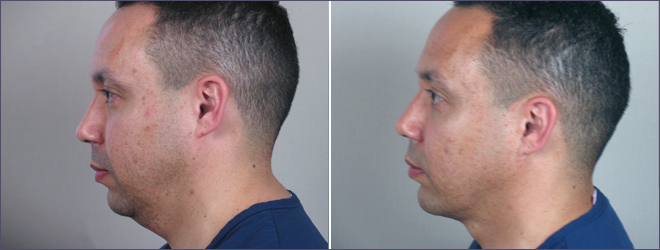 This 35 year old Hispanic patient was bothered by fullness in his neck. Dr. Parker performed VASER liposuction, removing 50 cc of fat. He also inserted a chin implant. After a rapid recovery, the patient was delighted with the markedly improved contour of his neck and chin.