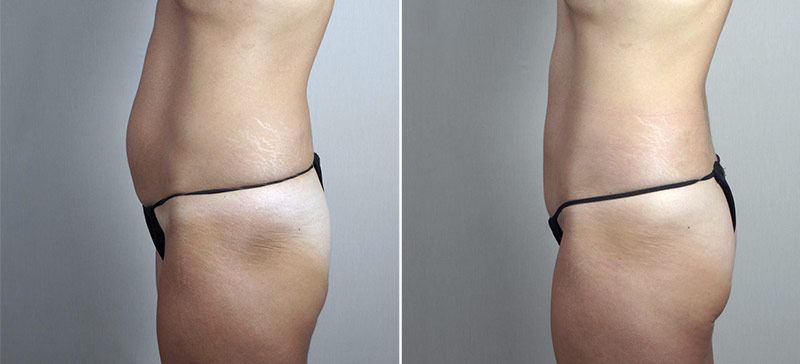 This 42 year old came in requesting improvement in the appearance of her abdomen after having 4 children. Though she had been heavy during her pregnancies, her weight has been stable more recently. She is 5′ 7″ and came in weighing 130 pounds. She was specifically bothered by her lower abdomen and fine with her upper abdomen. She competes as a bodybuilder and requested that her scar be as short and low as possible. After discussing a mini abdominoplasty with her, Dr. Parker subsequently performed the procedure, tightening the loose rectus abdominus muscles, removing skin from the lower abdomen and carefully closing the incision with multiple layers of dissolvable sutures to create a short, low, thin scar. The patient recovered rapidly afterwards, going on vacation to Jamaica 2 weeks after surgery. She loves the appearance of her abdomen and feels much more self confident.