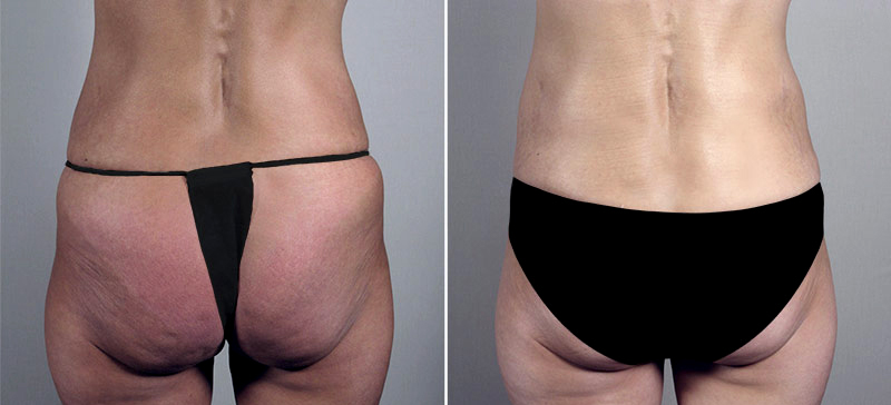 This 47 year old, referred by her physician to Dr. Parker, requested rejuvenation of her breasts, abdomen and hips following the birth of her children and a prolonged medical disease. The patient is 5’4″ tall and weighs 125 pounds. Dr. Parker recommended, and performed, a breast augmentation (saline implants, 375cc on the right and 325cc on the left), lipoabdominoplasty and VASER liposuction of the patient’s hips (175cc removed from each side). The patient and her husband were amazed at how quickly she recovered from surgery. She is ecstatic with her appearance and its effect on her self-esteem.