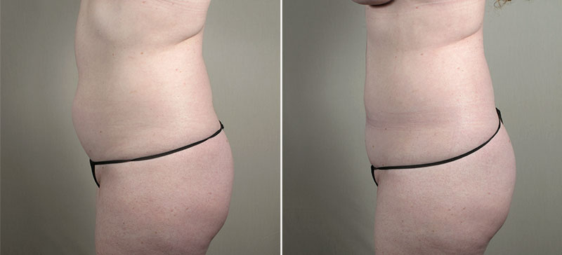 This 44 year old existing patient of Dr. Parker’s requested breast augmentation and liposuction of her abdomen. Her breasts have always been smaller than desired; she was also noticing increased fullness in her abdomen due to recent hormonal changes. The patient is 5′ 2″ tall, weighs 140 pounds and wears a 34 B cup. Based on her Sizing Sessions, at surgery, Dr. Parker inserted 400 cc silicone implants into a partial submuscular, or dual plane, location through small inframammary incisions. In addition, he removed 800 cc of fat from her abdomen with liposuction. The patient said her recovery was not difficult. She is very happy with the appearance of her breasts and abdomen.