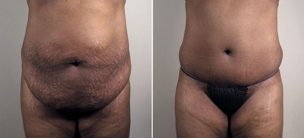 This 50 year old patient was referred to Dr. Parker by another patient. She asked him to give her smaller, uplifted breasts and a flatter abdomen. She was ok with her hips and wished to leave them alone. The patient has had 2 children in the past. She is 5’6″, 190 pounds and wears a D cup bra. The patient has been stuck at this weight for some time; she would like to lose weight but has not been able. Dr. Parker discussed treatment options with her. She opted for a breast reduction and lollipop lift as well as a Parker Tummy Tuck. Dr. Parker subsequently performed these procedures in one surgical setting. He removed 285 grams of tissue from the right breast and 255 grams from the left. The patient is very happy with the results of her procedures and loves the way her scars have healed.