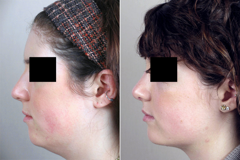 This 21 year old requested Dr. Parker to improve the fullness of her neck and the appearance of her nose; specifically, she asked to have her nose made to appear somewhat smaller. Dr. Parker performed VASER liposuction on the patient’s neck, removing 50 cc of fat. During the same appointment, he performed an open rhinoplasty, rasping the nasal bones to make them appear smaller and somewhat more narrow. He also removed excess cartilage from the nasal tip and sculpted the remaining cartilage with sutures under direct vision to create a more delicate, refined tip. The patient experienced an appropriate amount of swelling in both areas, but little in the way of bruising and no pain. She is very please with the postoperative appearance of both her neck and nose.