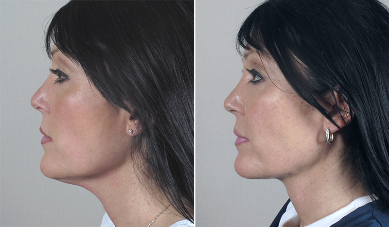 This 49 year old was bothered by the fullness of her neck and requested VASER liposuction of this area. The patient had a friend undergo this procedure in Florida; she was impressed by the results and recovery. Dr Parker performed VASER liposuction on the patient, removing 50 cc of fat from this area. She indeed recovered quickly with little swelling and bruising. The patient is quite pleased with the improved contour and appearance of her neck.