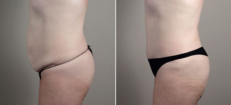 This 49 year old lost over 90 pounds several years ago, through diet and exercise which she has maintained. The patient is 5′ 5″ tall and weighs 150 pounds. She came in reporting she was bothered by the hanging skin on her upper and lower abdomen, telling Dr. Parker, “it drives me crazy.” This is not an uncommon sentiment; people who have lost significant weight are often frustrated by leftover excess skin. Dr. Parker assured her a combination of liposuction and tummy tuck could treat her concerns. At surgery, Dr. Parker performed a lipoabdominoplasty. The patient’s recovery was uneventful. She is very happy with her markedly improved abdominal contour.