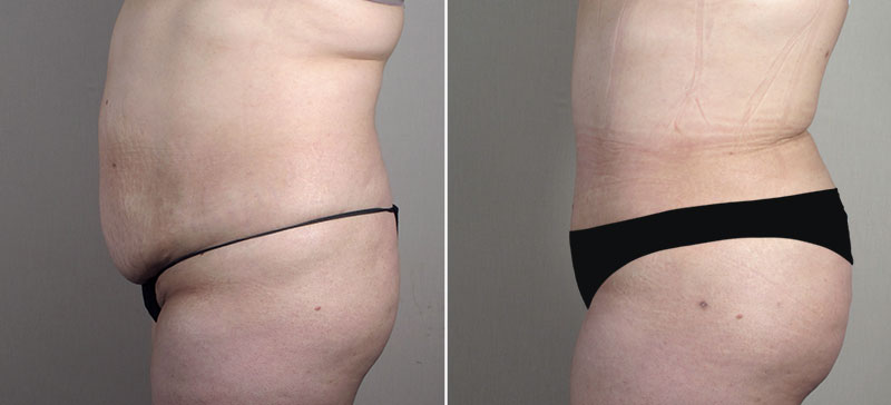 This 54 year old patient was referred to Dr Parker by an existing patient. She requested a flatter abdomen, more contoured hips and fuller buttocks though did not want to look fake. The patient subsequently underwent a lipoabdominoplasty, liposuction of the hips (removing 900 cc of fat from each side) and injected the buttocks with 350 cc of fat. The patient said her recovery was much easier than expected. She loves the appearance of her flatter abdomen, more contoured hips and fuller but natural looking buttocks.