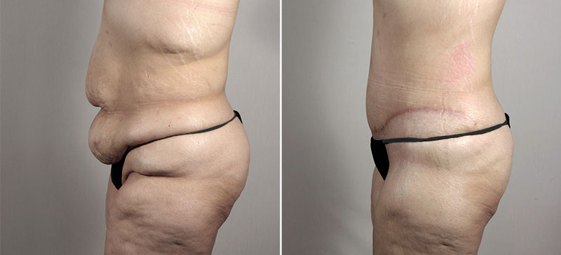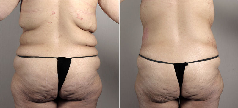 This 37 year old presented to Dr Parker several years after bariatric surgery having lost 120 pounds. She is 5’4″ tall, now weighs 165 pounds and says her weight is stable. She asked Dr Parker to make her abdomen flatter and back more contoured but was not really bothered by her hips. Dr Parker performed a lipoabdominoplasty on her as well as a bra line back lift to improve the contour of her back and hips. The patient said her recovery was not bad. She absolutely loves her flatter abdomen as well as the improved contour of her back and hips. She said the quality of the scarring, which continues to improve, is very acceptable to her.