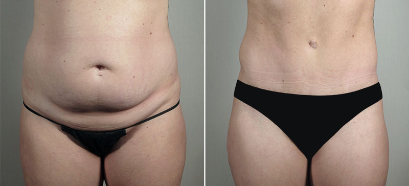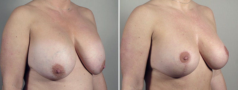 This 38 year old was referred to Dr Parker by another patient. She had a TUBA breast augmentation with large saline implants 19 years ago. Subsequently her breasts enlarged and drooped. She wanted to have her breasts smaller and more uplifted. In addition, she wanted her abdomen flatter and more contoured. The patient is 5’5″ tall and weighs 155 pounds. Dr Parker removed a 520 cc saline implant from the right breast and 600 cc implant from the left. He replaced these with 425 cc silicone implants, then performed a lollipop lift. At the same surgery, he performed a lipoabdominoplasty as well as liposuction of the hips (removing 800 cc of fat from each side) and back (removing 100 cc of fat from each side). The patient was thrilled with her recovery which was much better than she had anticipated. She now works out every day at the gym and has lost 10 pounds since surgery. Her dress size has gone from 10 to 4. She loves the ways she looks and feels–much more self confident and happy with her body.