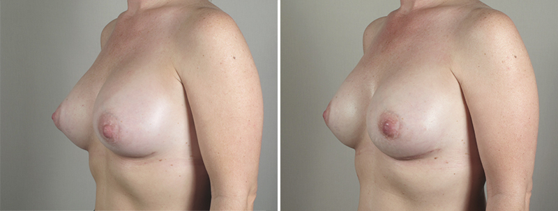 This 36 year old patient requested Dr. Parker to correct the capsular contracture in her left breast. Using the patient’s existing inframammary incision, Dr. Parker removed the hardened breast capsule and replaced the 350 cc implant with another one the same size. The patient experienced little pain after surgery. She is very happy with the symmetry she now has in her soft breasts.