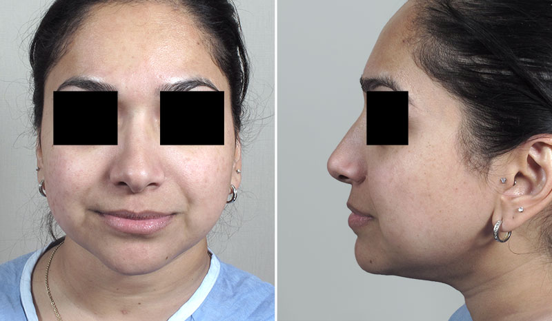 This patient recently visited our office, 5 years after her rhinoplasty surgery and we took photos. Her nose is unchanged and her results still make her happy! She is now 36 years old.